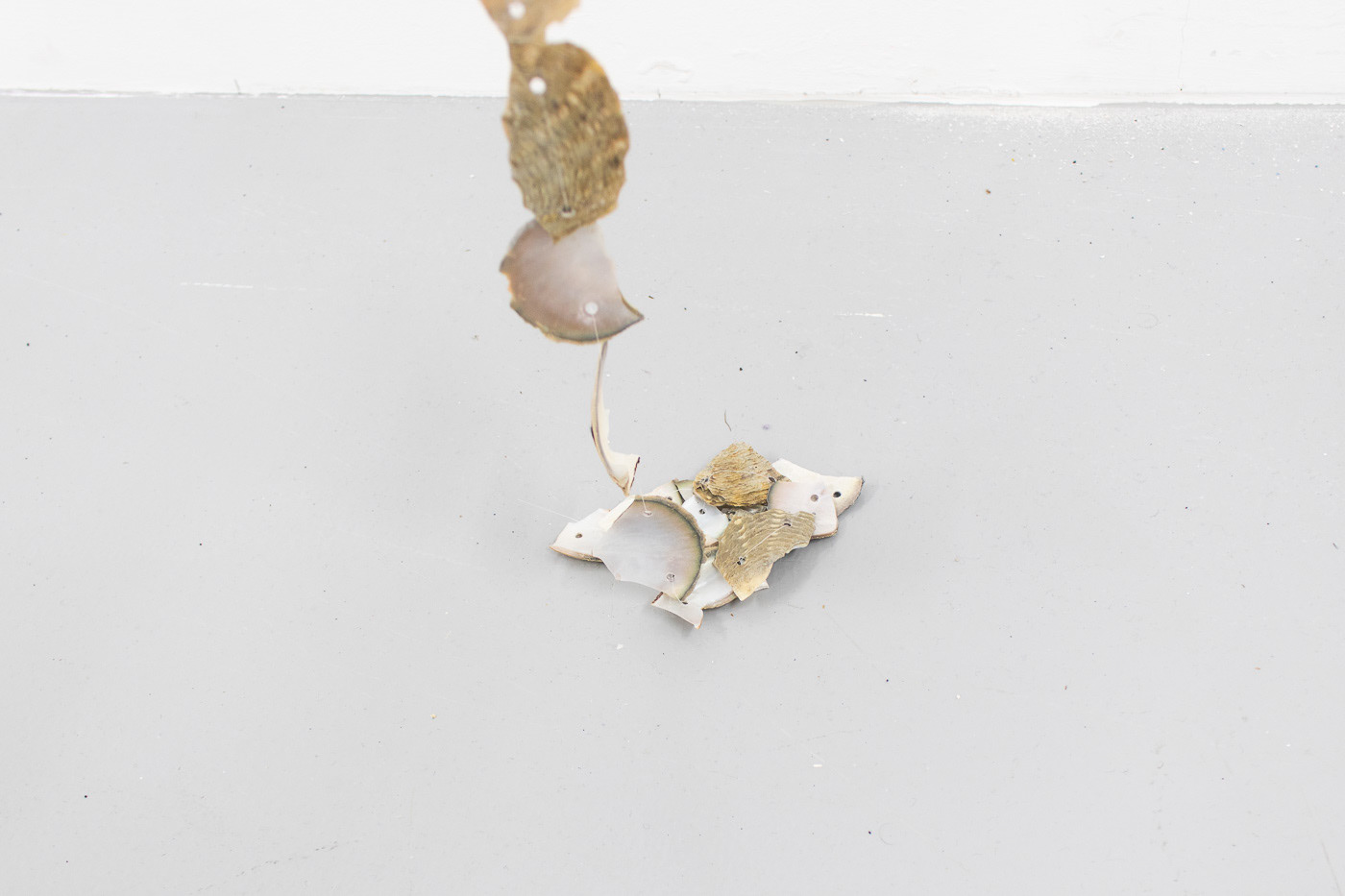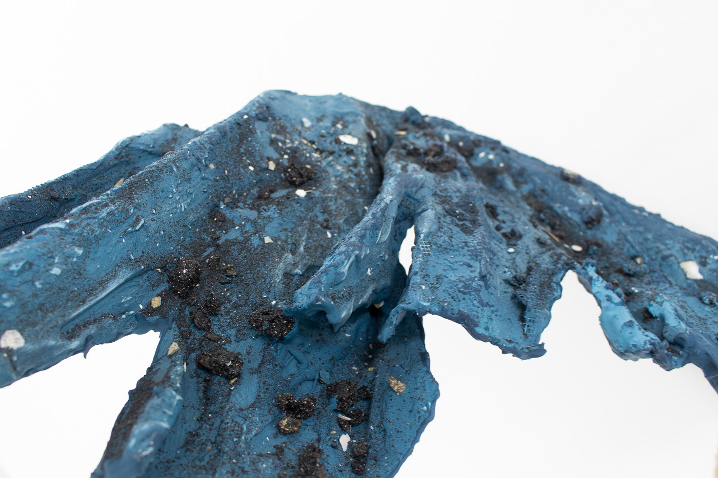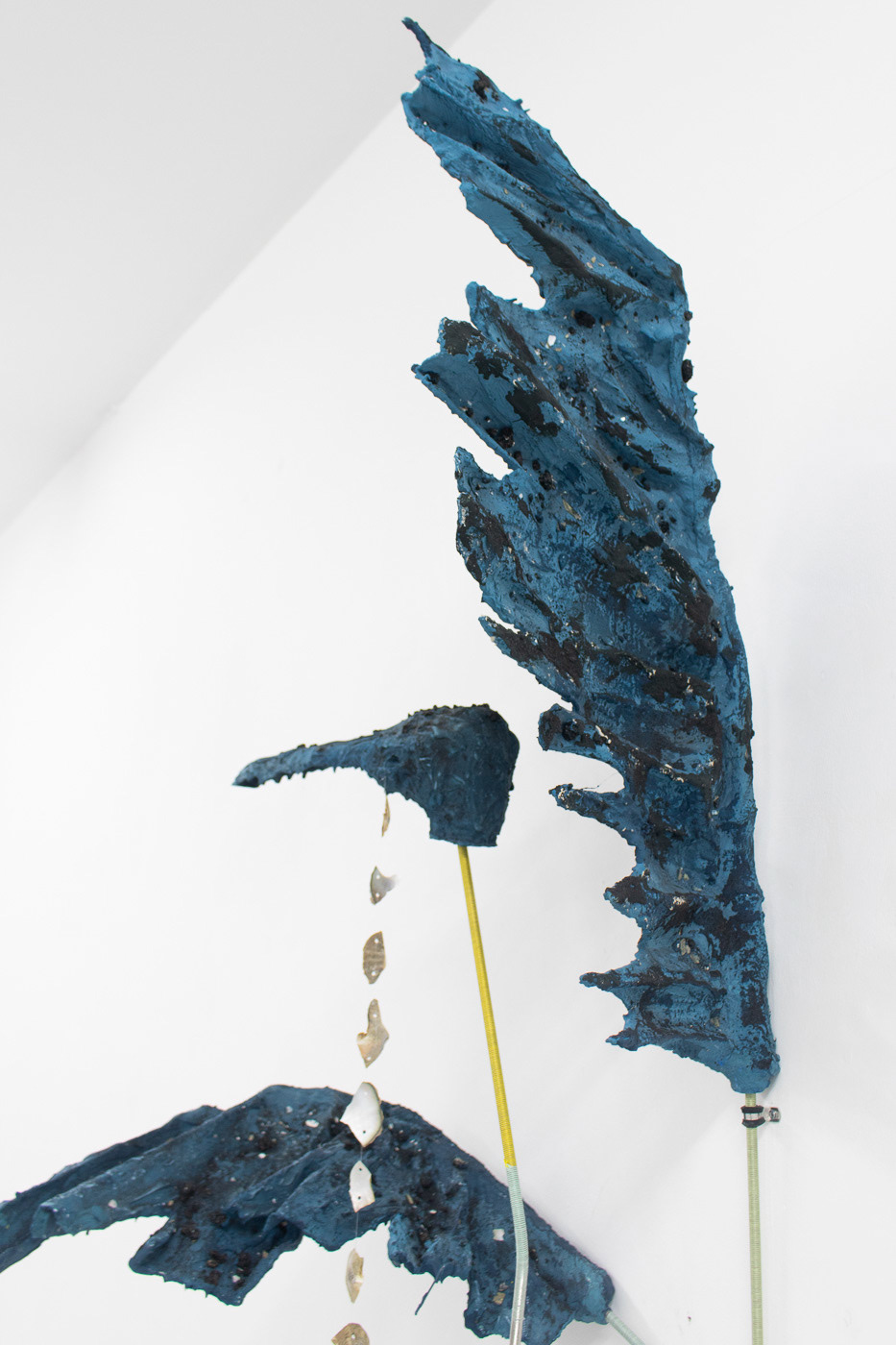 2022 Mesh, plaster, stainless steel, Jesmonite, pigment, asphalt, shell, black sand, fishing wire, embroidery thread 250 x 100 x 90cm