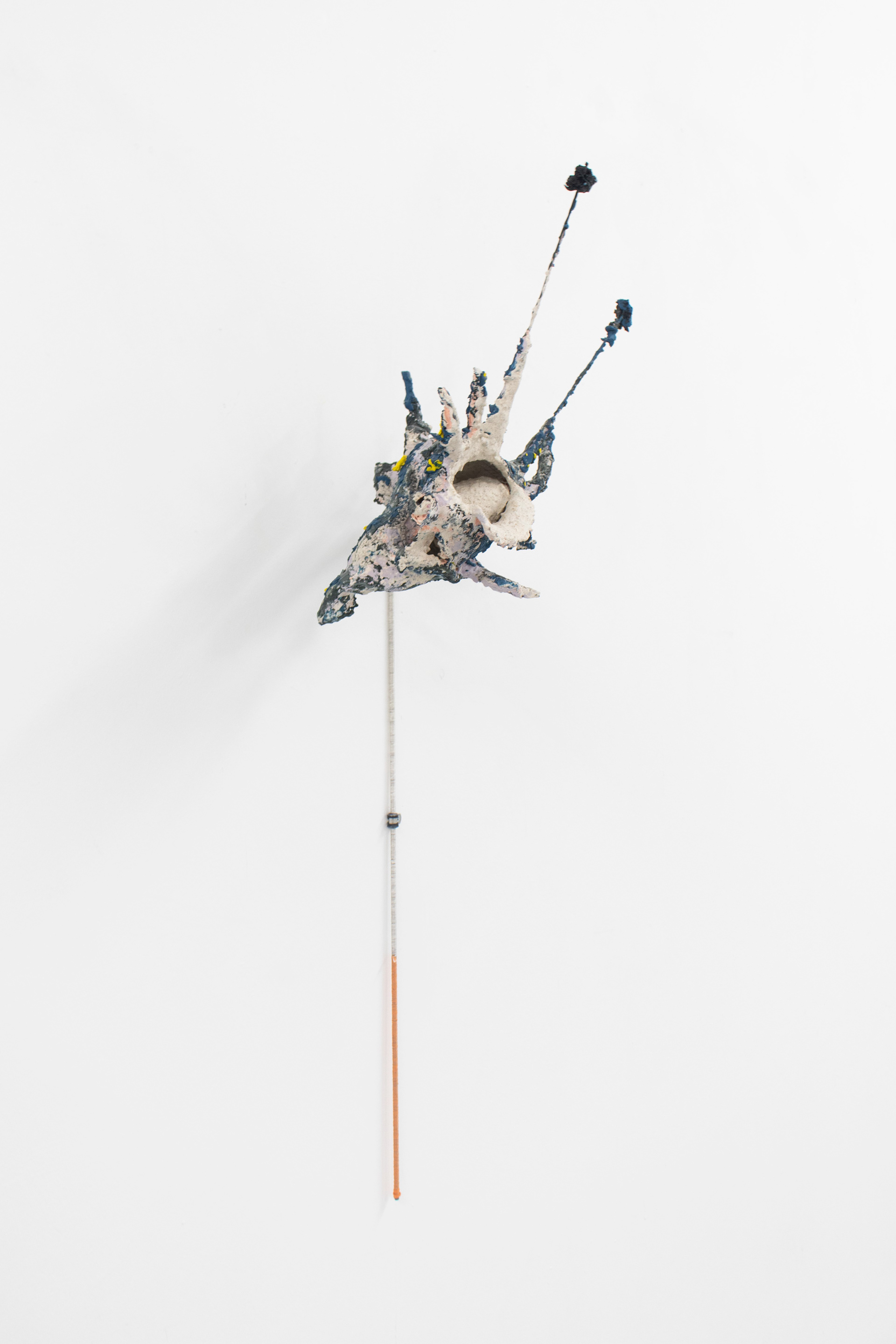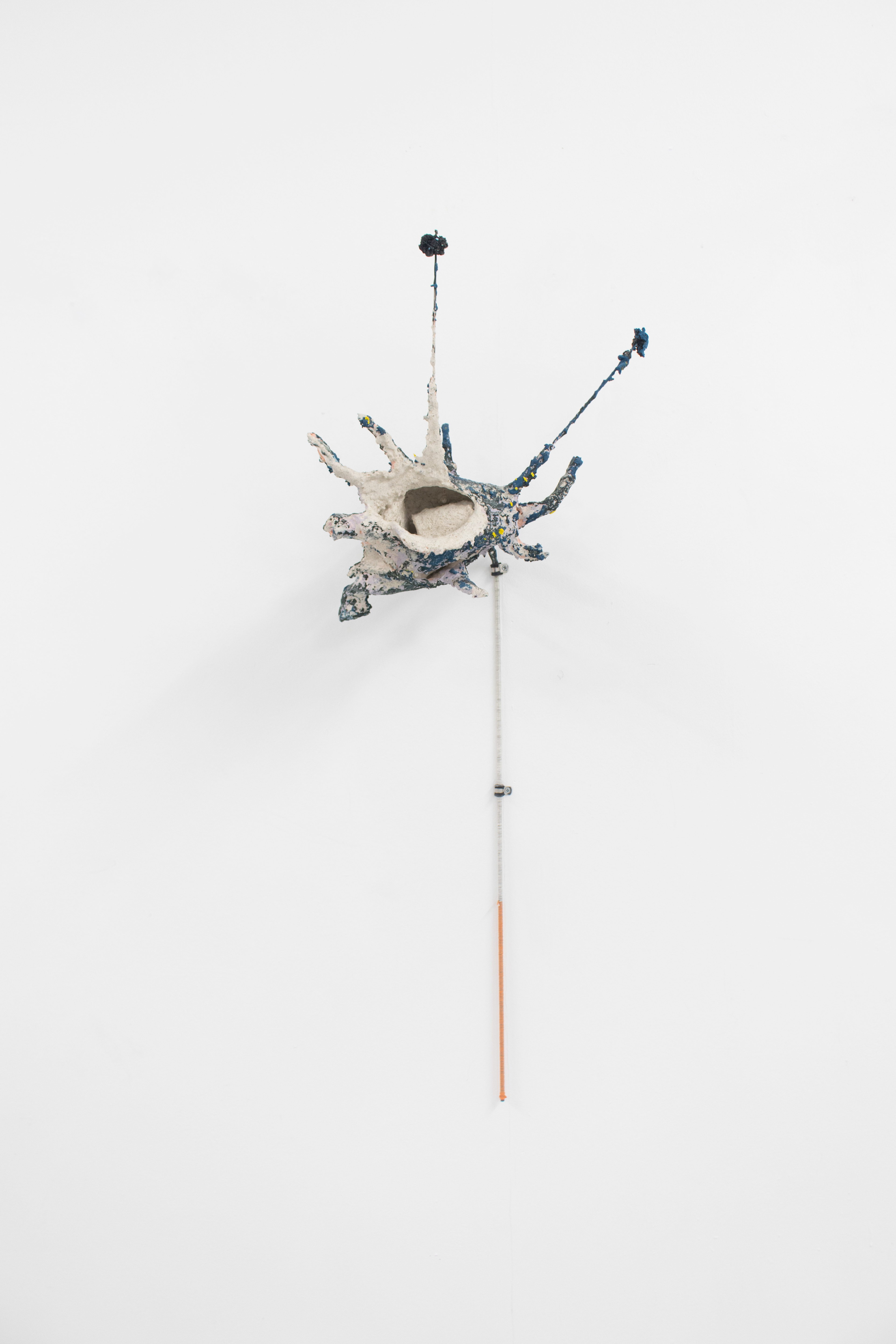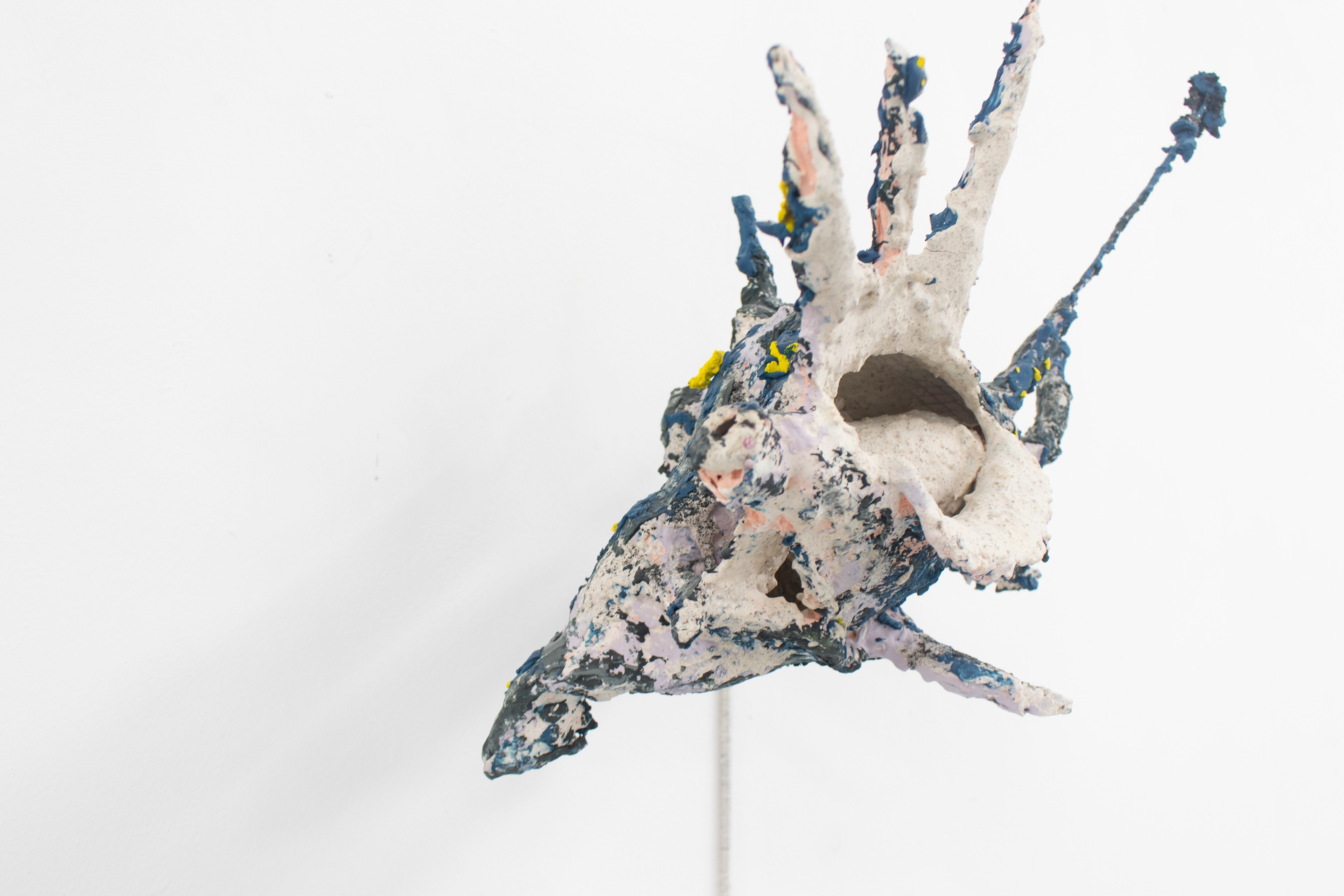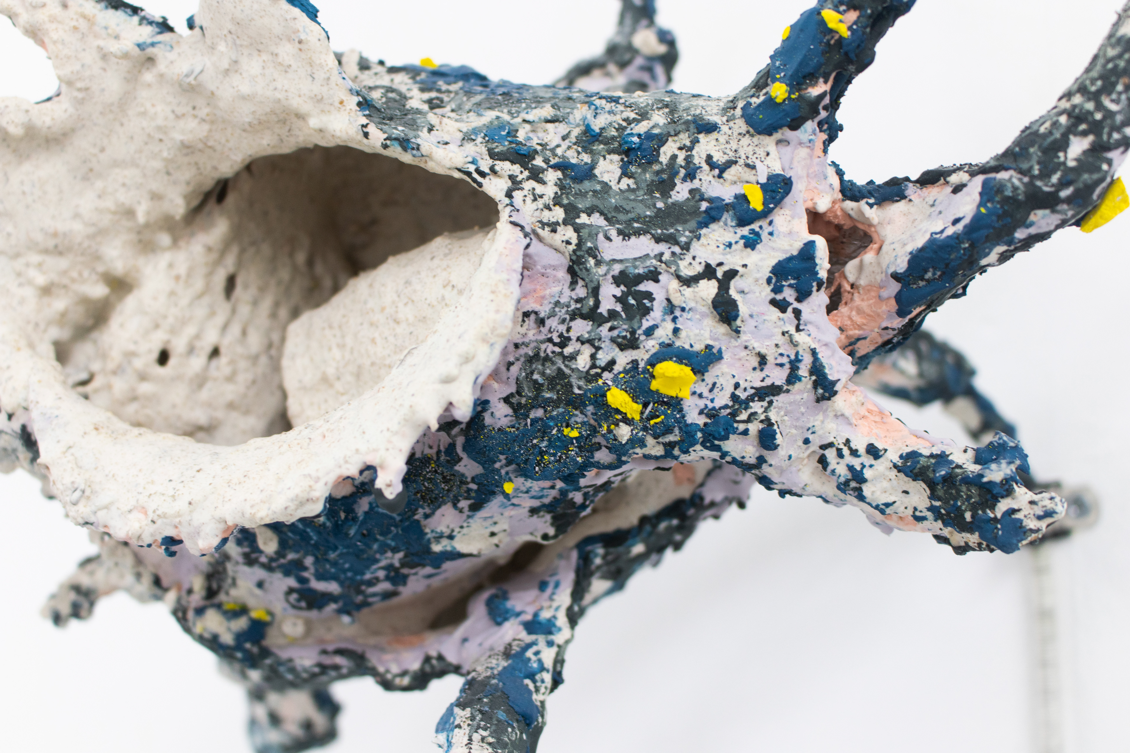 2022 Mesh, plaster, stainless steel, Jesmonite, pigment, black sand, ballast, embroidery thread, asphalt 90 x 30 x 20 cm